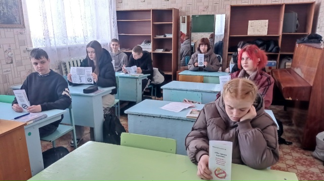 Ребята узнали о том, что курение — глобальная проблема нашего времени, что такое никотиновая зависимость и как она влияет на организм человека. Рассуждали, что успешный человек должен быть здоровым, ведь здоровье — это главная ценность в жизни. Далее подросткам были розданы буклеты с информацией о вреде и последствиях табакокурения, о составе табачного дыма, а также, что никотин — опасный яд, который вредит не только самому курильщику, но и окружающим.